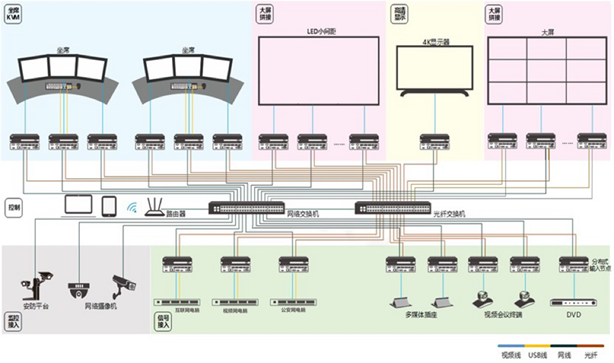 构建整体数据资源池、实现信号统一集中管控、提高指挥调度决策效率、解决多套系统兼容性问题实现安全稳定的一人多机应用、满足大屏幕日常模式使用、所见即所得”可视化操作、实现周边环境设备一键控制、告警事件联动应急处置、实现跨地域信号传输切换。